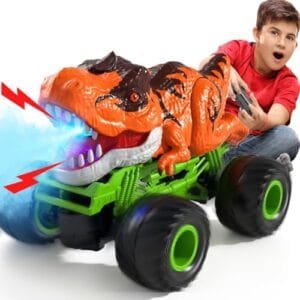 LILYBUDS RC Trophy Truck Electric Dinosaur Car for Kids 2.4Ghz Remote Control Toy with Light Sound Spray for Boys Ages 3 4 5 6 7 8