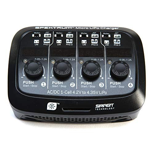 Spektrum S44 Smart Charger for RC Smart Plane Micro F 22 Jet Warbird 4 Port 1S LiPo Battery Charger with AC DC Input and Digital LED Display