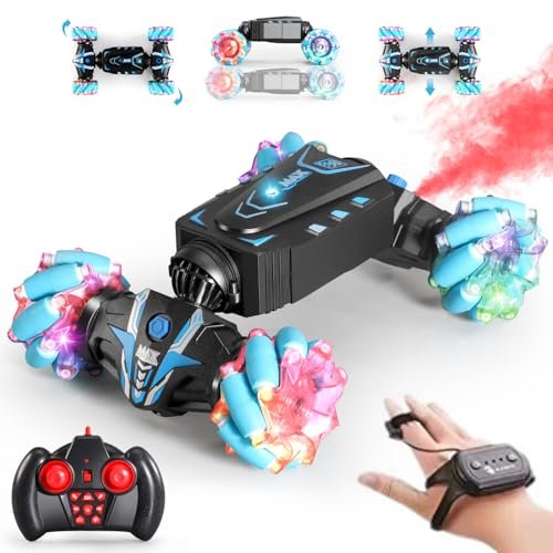 VANLINNY Uproar RC Truck Gesture Sensing Remote Control Stunt Car with Light Music and Sprayer 4WD 2.4GHz Monster Truck for Kids Ages 8 12