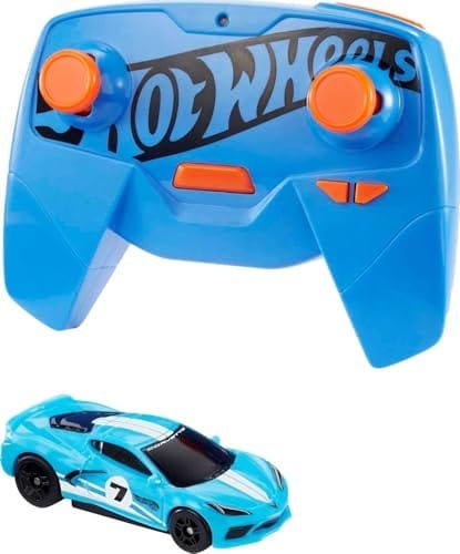 Hot Wheels Toy Car, RC C8 Corvette in 1:64 Scale, Remote-Control Vehicle with Controller & USB Cable, Works On & Off Track