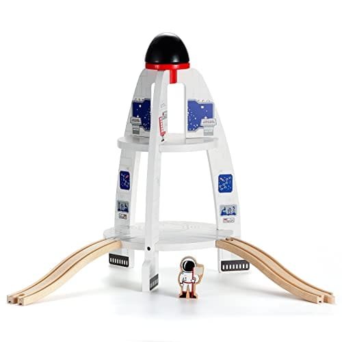 SainSmart Jr RC Rocket Ship Wooden Train Track Accessory Space Launcher Play Set Compatible with Brio Thomas Melissa and Doug