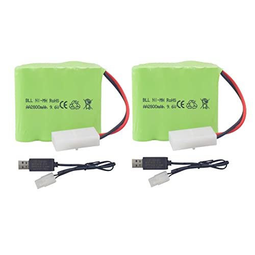 Sea Jump 2PCS AA 9.6V 2800mAh Ni MH RC Battery Pack with Tamiya Plug and USB Charging Cable for Toy Vehicles