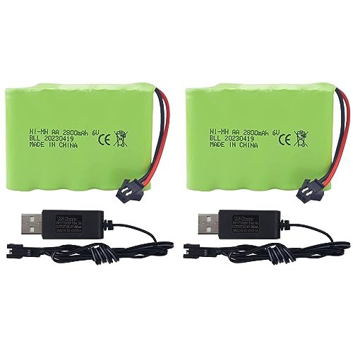 MOONZON 2PCS AA 6.0V 2800mAh SM2P Plug Rechargeable Battery with USB Charging Cable for RC Toys and Electric Tools