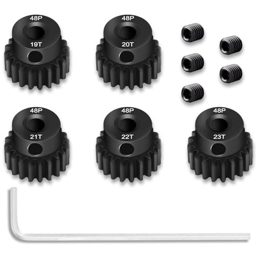 - Box-packed includes: 1 X 48P 3.175mm 19T pinion gear, 1 X 48P 3.175mm 20T pinion gear, 1 X 48P 3.175mm 21T pinion gear, 1 X 48P 3.175mm 22T pinion gear, 1 X 48P 3.175mm 23T pinion gear, 5 X 48P Screws, 1 X Screwdriver.