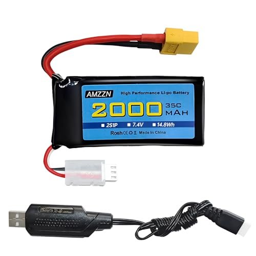 Elevate your RC experience with the AMZZN 7.4V 2000mAh 35C 2S Lipo Battery, designed for high-performance remote-controlled vehicles and drones. This rechargeable battery pack comes equipped with an XT60 discharge plug and a USB charging option, ensuring convenience and reliability for all your RC adventures. Whether you're racing RC cars, flying drones, or navigating RC ships, this battery delivers the power and endurance needed for extended playtime.