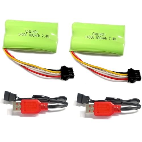 OXWINOU 7.4V 800mAh Tornado RC Battery with SM 4P Plug and Charger Cable 2 Pack