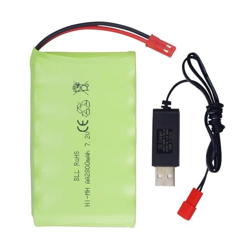 AA 7.2V 2800mAh Ni MH Rechargeable Battery with JST 2P Plug USB Charging Cable for TR 211 TR 212 TR 215 550 RC Excavator Truck Engineering Vehicle