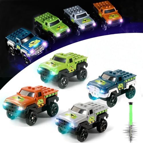 Save Unicorn RC Car Tracks in Minnesota Dino Track Cars with Glow in The Dark Feature and 3 Flashing LED Lights 4Pack Green3