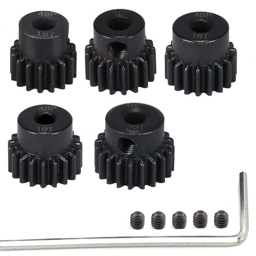 Upgrade Battery RC Car with XYZ Brand 48P Hardened Steel Pinion Gear Set 3.175mm Hole 16T to 20T 48DP Pitch Gears Includes Hex Key 5pcs
