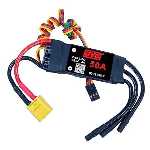 Elevate your RC aircraft brushless motors performance with the DYS 50A Brushless ESC, a powerhouse designed for enthusiasts and professionals alike. This ESC comes pre-soldered with an XT60 connector and 3.5mm bullet plugs, ensuring a seamless setup for your RC fixed-wing aircraft or helicopter. Its 5V/4A SBEC is highly efficient, capable of powering your receiver and servos without breaking a sweat. Whether you're soaring through the skies or performing intricate maneuvers, this ESC is your reliable partner for unmatched speed and control.