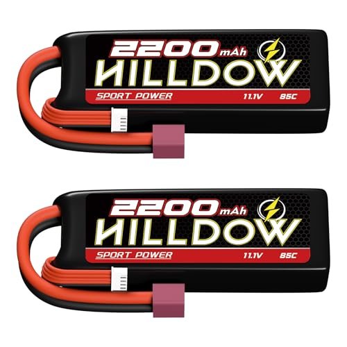 Hilldow 11.1V 3S Lipo Battery 85C 2200mAh with T Connector for RC Airplane Quadcopter Helicopter Drone FPV 2 Packs