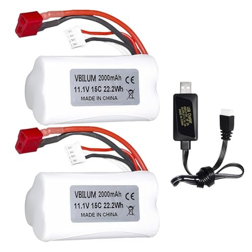 VBILUM 11.1V 2000mAh Li ion Battery for 210E 200E High Speed RC Car and 2104 R608 Brushless RC Boat Rechargeable with USB Charger Cable 2PCS