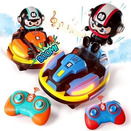 - Easy for Toddlers to Play: Designed for young kids, these rc bumper cars are easy to control with a handheld remote. They can drive in all directions on wooden floors, carpets, or tiles. When the car hits the side button, a mini character pops out with awesome sound effects!