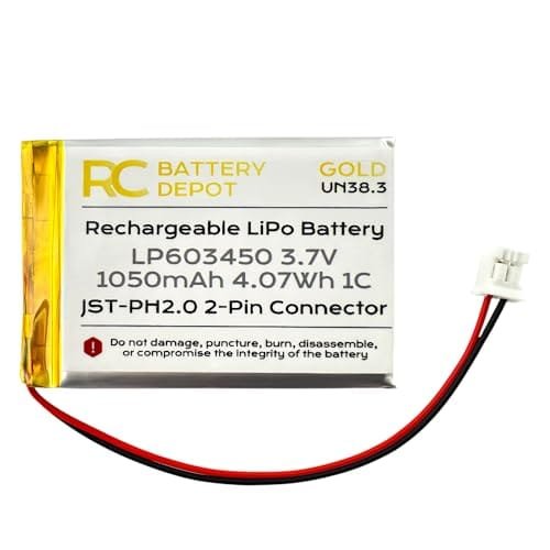 RC Battery Depot 3.7V 1050mAh Lipo Battery Pack JST PH2 2 Pin Connector Ideal RC Tire Foam Alternative